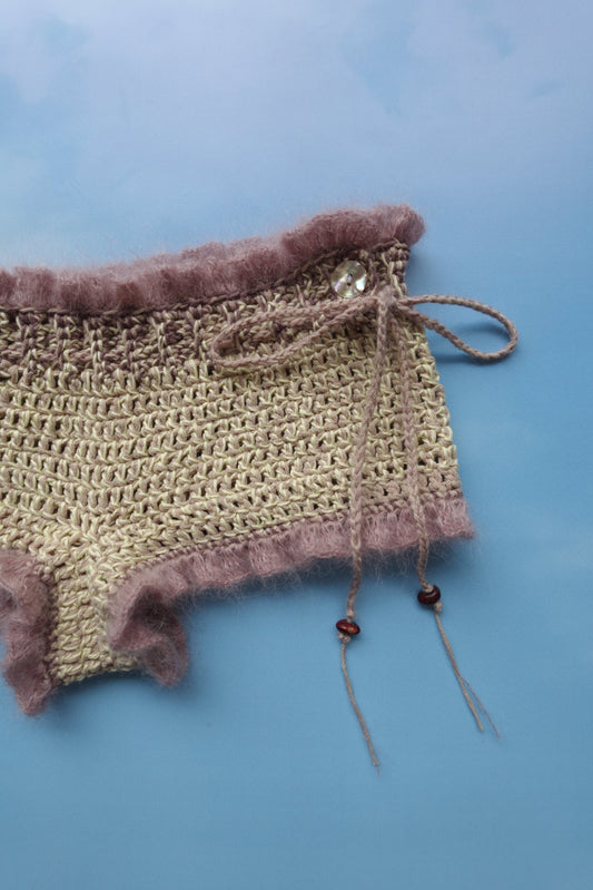 Micro Mini Alpaca Striped Shorts in Brown & Purple
