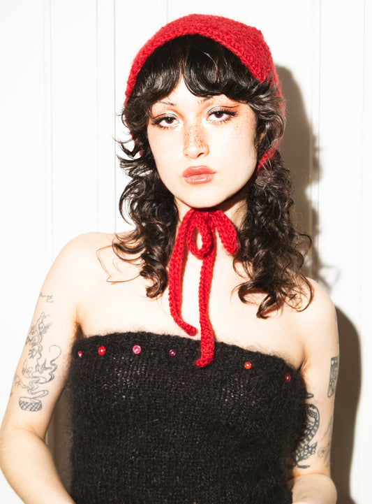 Ruby Red Mohair & Alpaca Wool Bowtie Bonnet