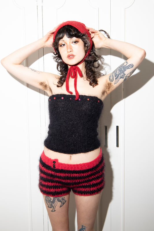 Mohair Stripey Knit Tank with Buttons & Bowtie