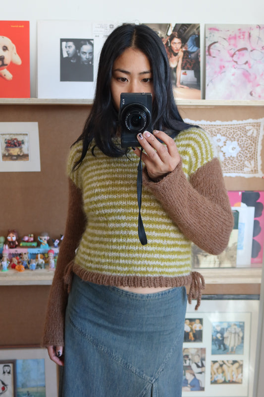 Hand Knit Mohair & Alpaca Sweater in Pistachio & Espresso Brown