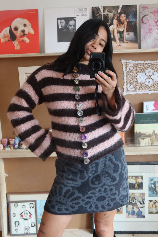 Made to order Striped Brushed Mohair Pink & Brown Cardigan