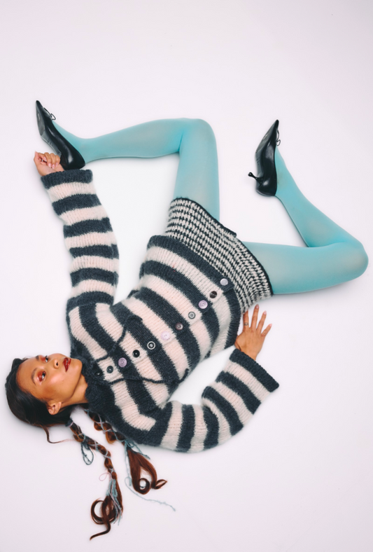 Made to order Striped Brushed Mohair Charcoal & White Cardigan