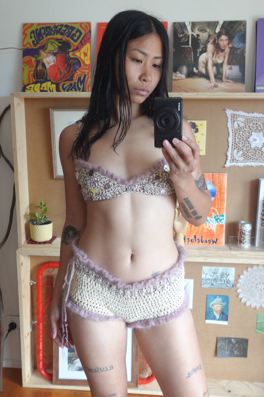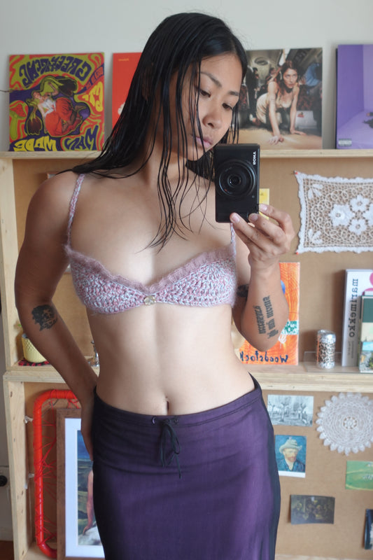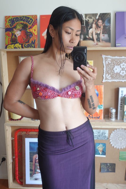 Purple & Pink Crochet Frill Bra with Buttons