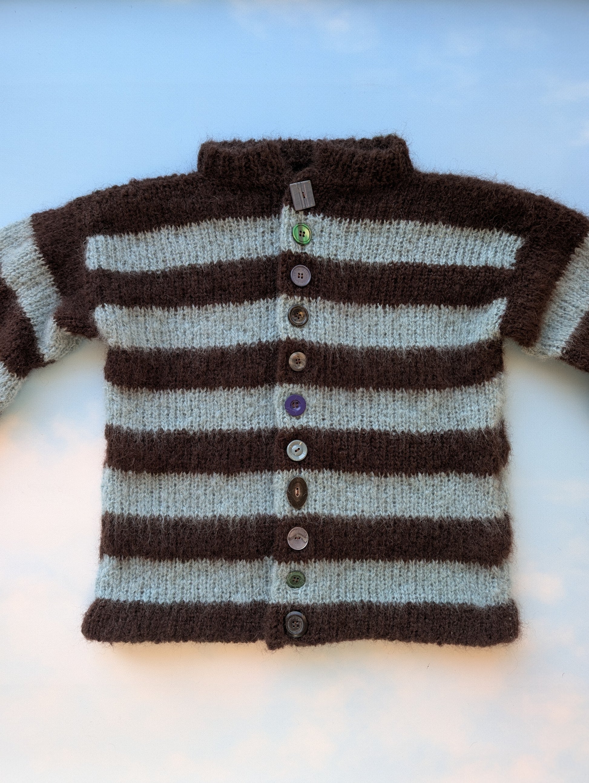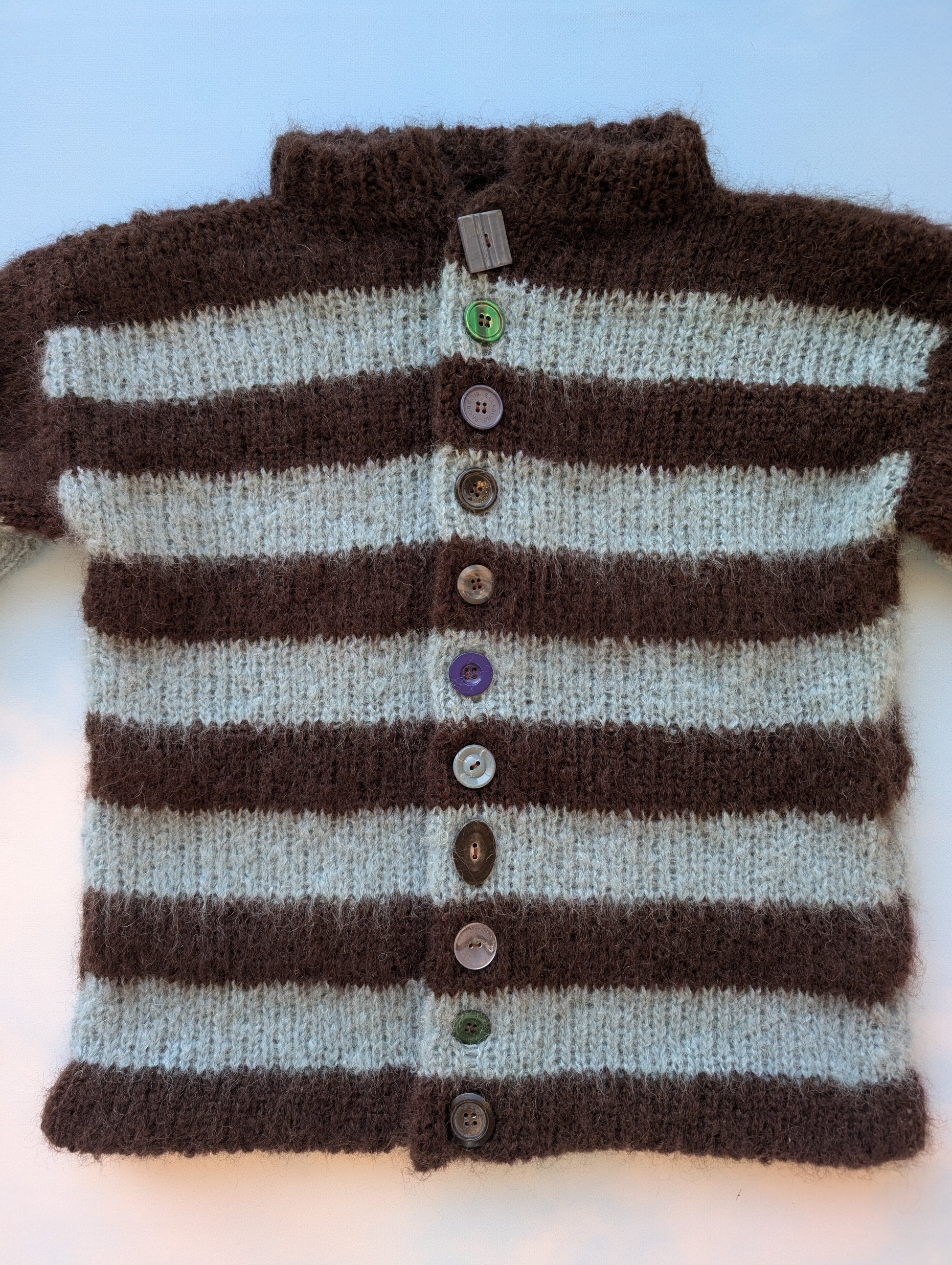 Made to order Striped Brushed Mohair Blue &Brown Cardigan